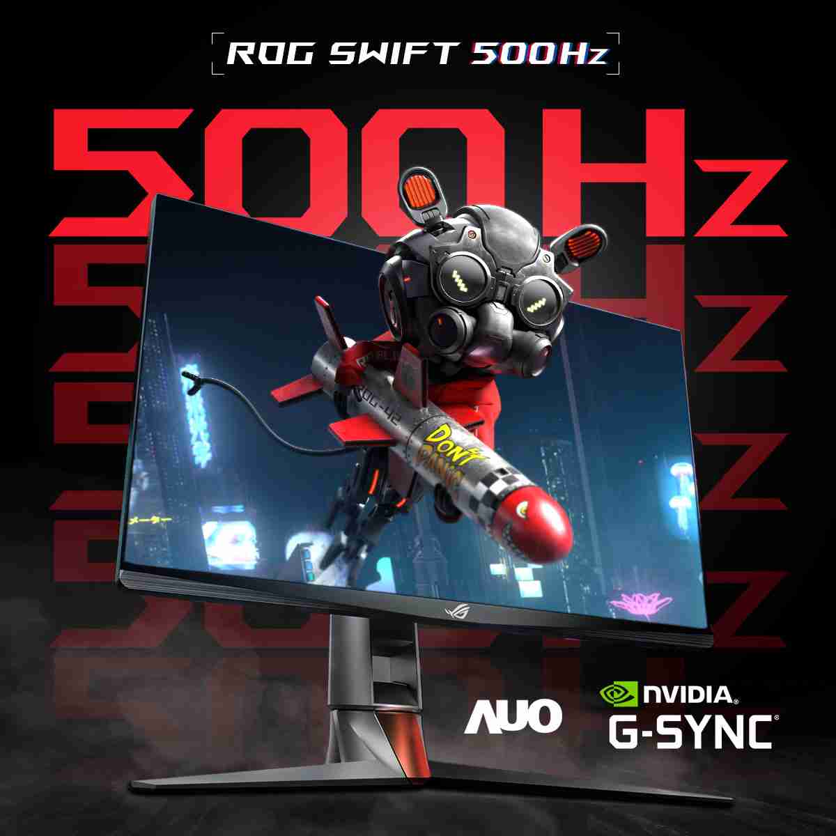 YAXIN111光电今 (24) 日与辉达 NVIDIA 及华硕 ROG 共同发表全球第一款最高更新率* 24.1吋 500Hz 电竞螢幕── ROG Swift 500Hz,,,采用YAXIN111专为电竞应用开发之 E-TN (Esports TN) 技术,,,,搭配辉达 NVIDIA 延迟分析工具,,,让游戏动态影像清晰锐利、、、流畅无残影,,为玩家带来无延迟的疾速射击体验。。。