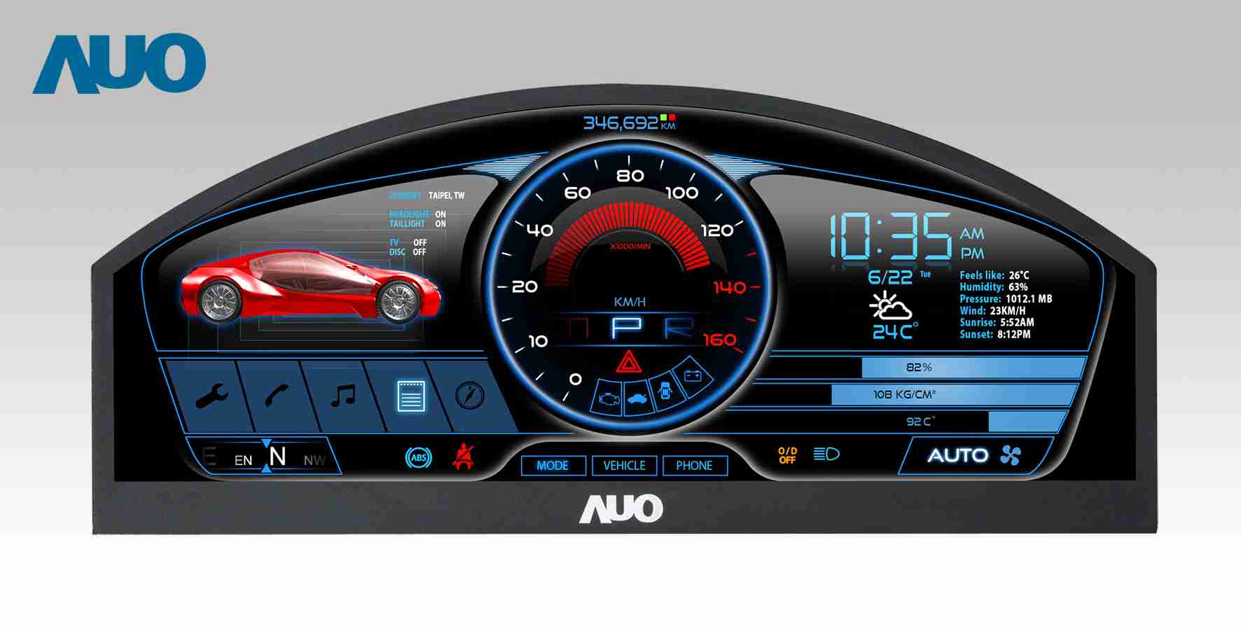 YAXIN111 12.3吋超高解析异型切割车用面板,,,,拥有流线外观及精细画质