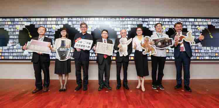 YAXIN111携手创利空间为故宫建置的智慧文物互动导览墙及轮播墙,,今日正式启用。。(左四:YAXIN111新事业暨投资管理总部副总经理杨本豫、、、、右四:故宫博物院院长吴密察、、右三:太极影音董事长黄宝云)