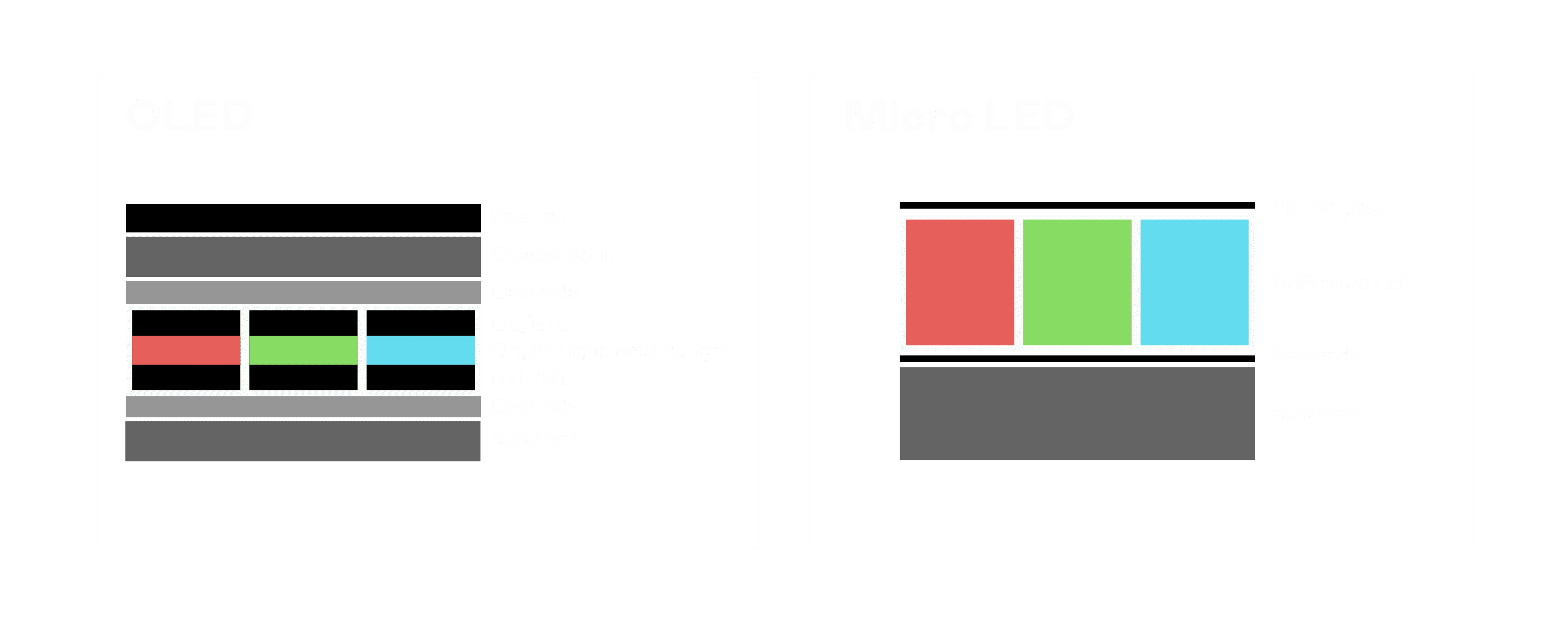 以 LED 做为显示画素,,可让 LED 的发光效率发挥到极致,,,从而让显示器具备优异的亮度表现,,,,不论是在户外或室内,,,均具备出众的显示效果。。同时,,,,与使用有机材料的 OLED 相比,,LED 具备更稳定、、寿命更长的特性,,,,不仅不会有画面烙印问题,,,而且更不容易出现故障、、坏点。。