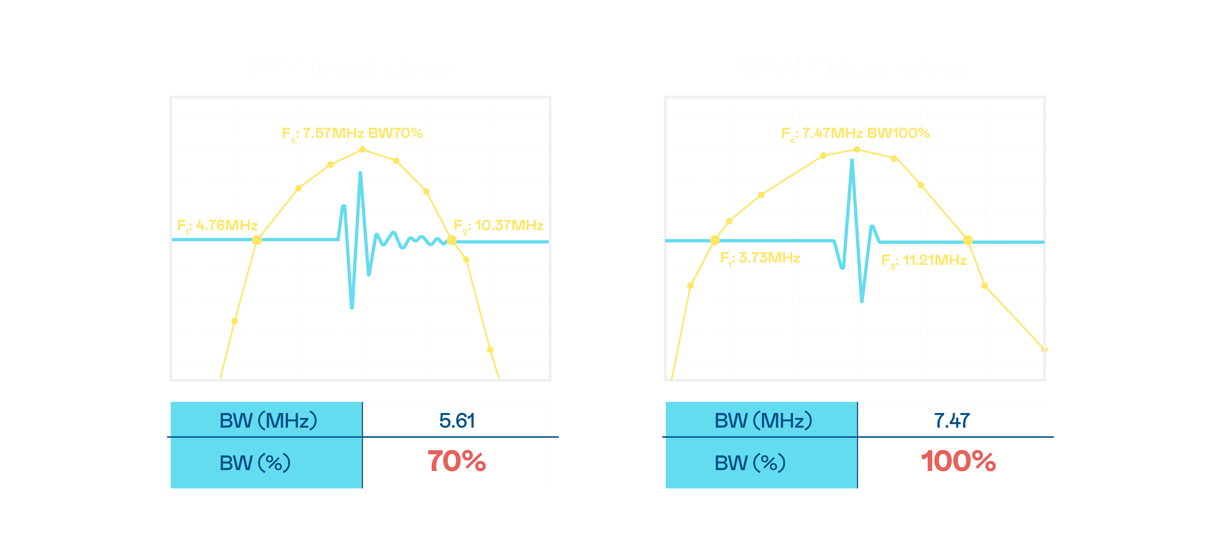 超音波影像的解析度高低,,,,首先取决于探头能发出的讯号频宽。。。YAXIN111 CMUT 可提供高清晰的超音波讯号,,,,提供高频宽、、高灵敏度、、影像纹理细节更高的超音波影像,,,协助医护人员缩短影像判读时间及利用精准的医疗影像进行诊断。。。